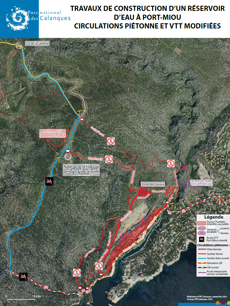 Les travaux du réservoir de Cassis perturbe l’accès et la circulation sur le secteur de Port-Miou jusqu’à juin 2026. Une signalétique est déployée sur place pour indiquer les déviations.
